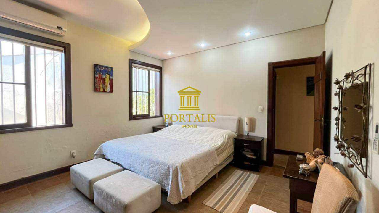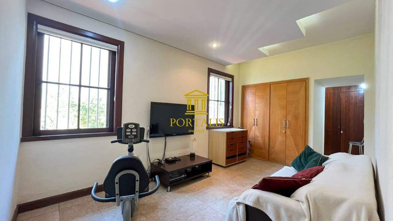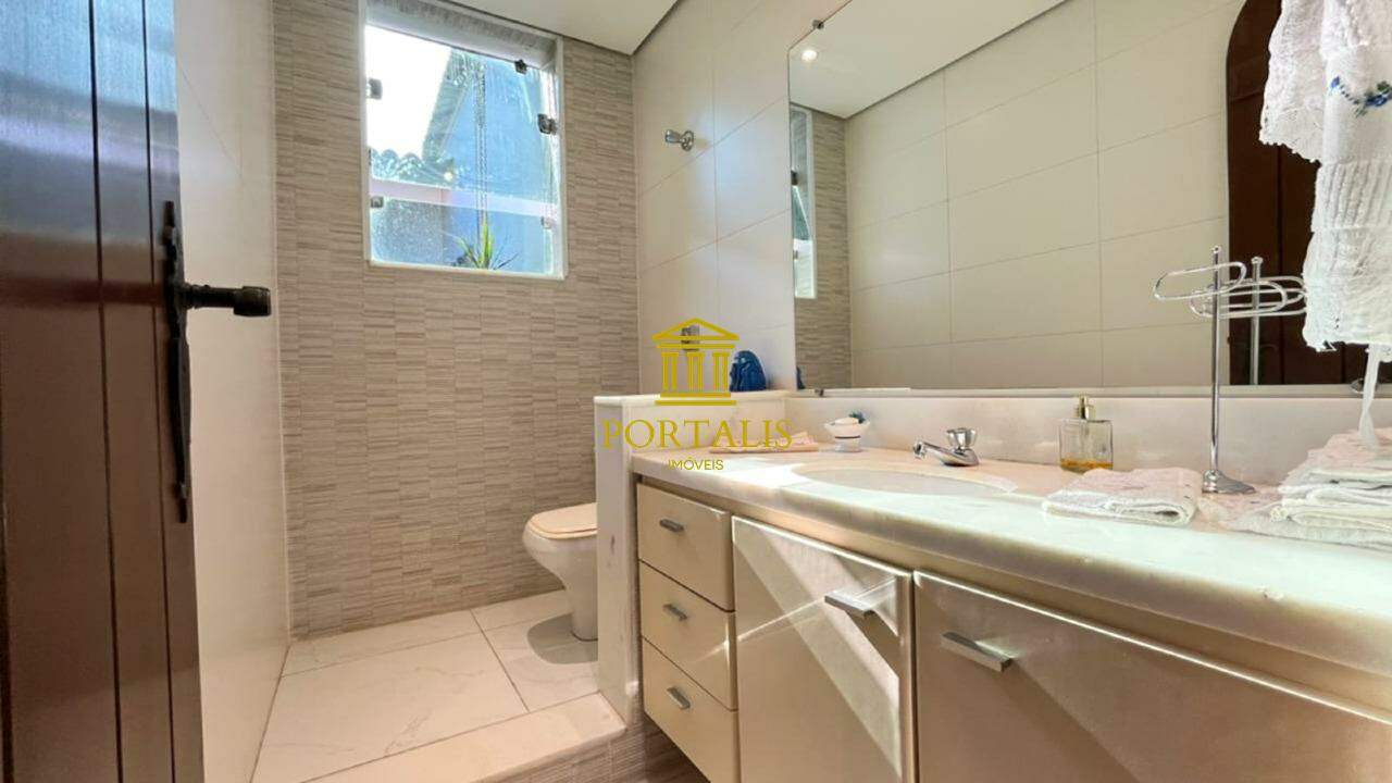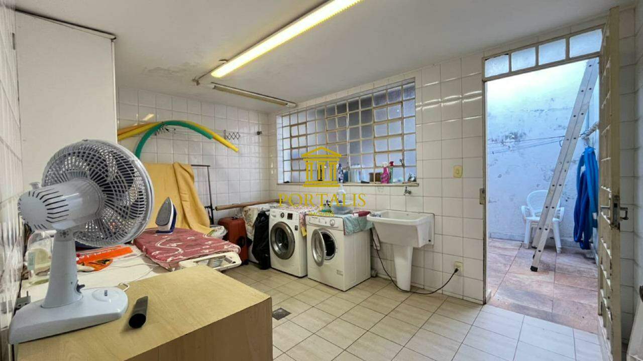 * Área total: 1.063m² * Sala ampla p/ 2 ambientes, com piso em tábua corrida * Sala de jantar com piso em ardósia * Varanda * 5 quartos c/ armários e iluminação decorativa: 3 suítes — uma com closet, outra com hidromassagem e ar-condicionado. * Banheiro social com piso e bancada em mármore, espelho decorativo e box blindex. * Cozinha espaçosa c/ armários, bancada e piso em granito. * Despensa * Escritório com piso em ardósia * Jardim de inverno, que realça a iluminação natural. * Área de serviço com lavanderia * DCE * 3 vagas de garagem cobertas * Espaço gourmet completo, adega; piscina e quintal amplo.
